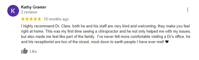Our chiropractor, Dr. Kenneth Clare D.C., and our staff will work relentlessly alongside you to get to the bottom of any symptoms that you may be experiencing so that we can determine a course of action moving forward to reduce or get rid of the symptoms entirely.